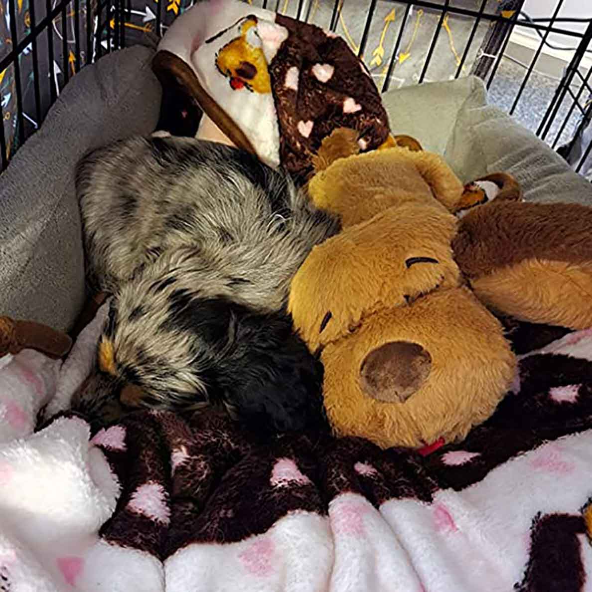 Snuggle Puppy® comes with the Real-Feel Heartbeat® that mimics your puppy’s mom and littermates. This helps your puppy sleep through the night without crying and barking.