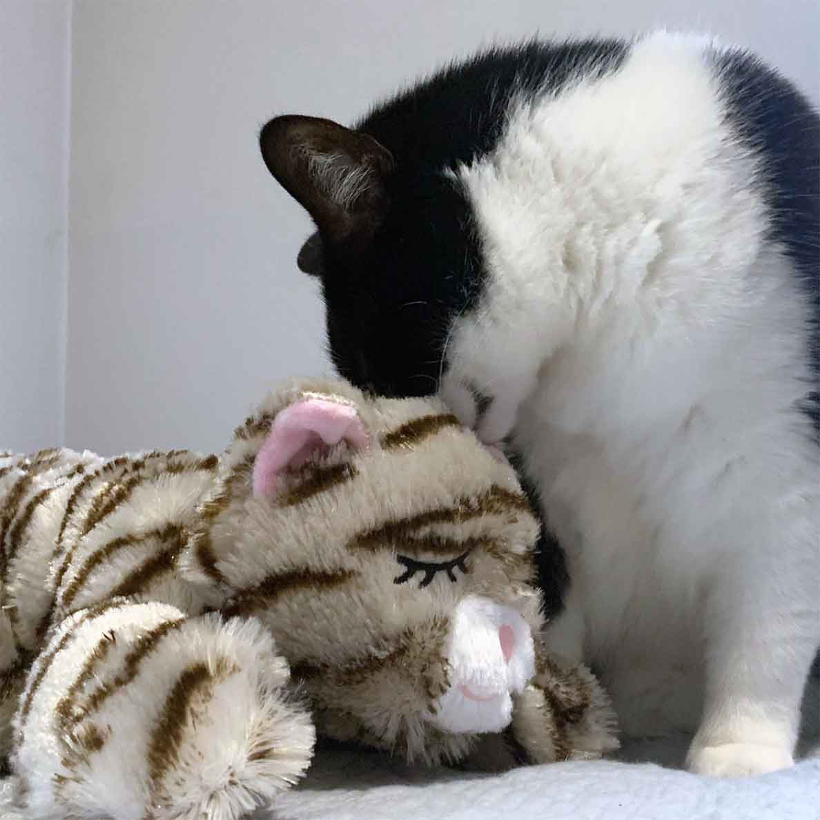 - Snuggle Kitty is machine washable on a gentle cycle (make sure to remove the heartbeat and heat pack prior to washing).