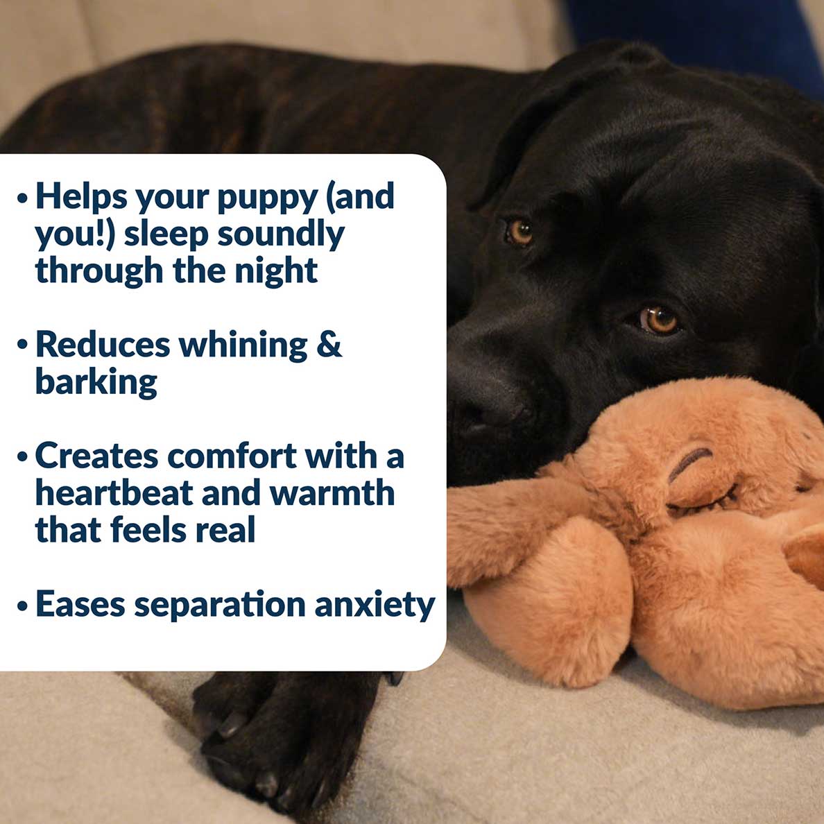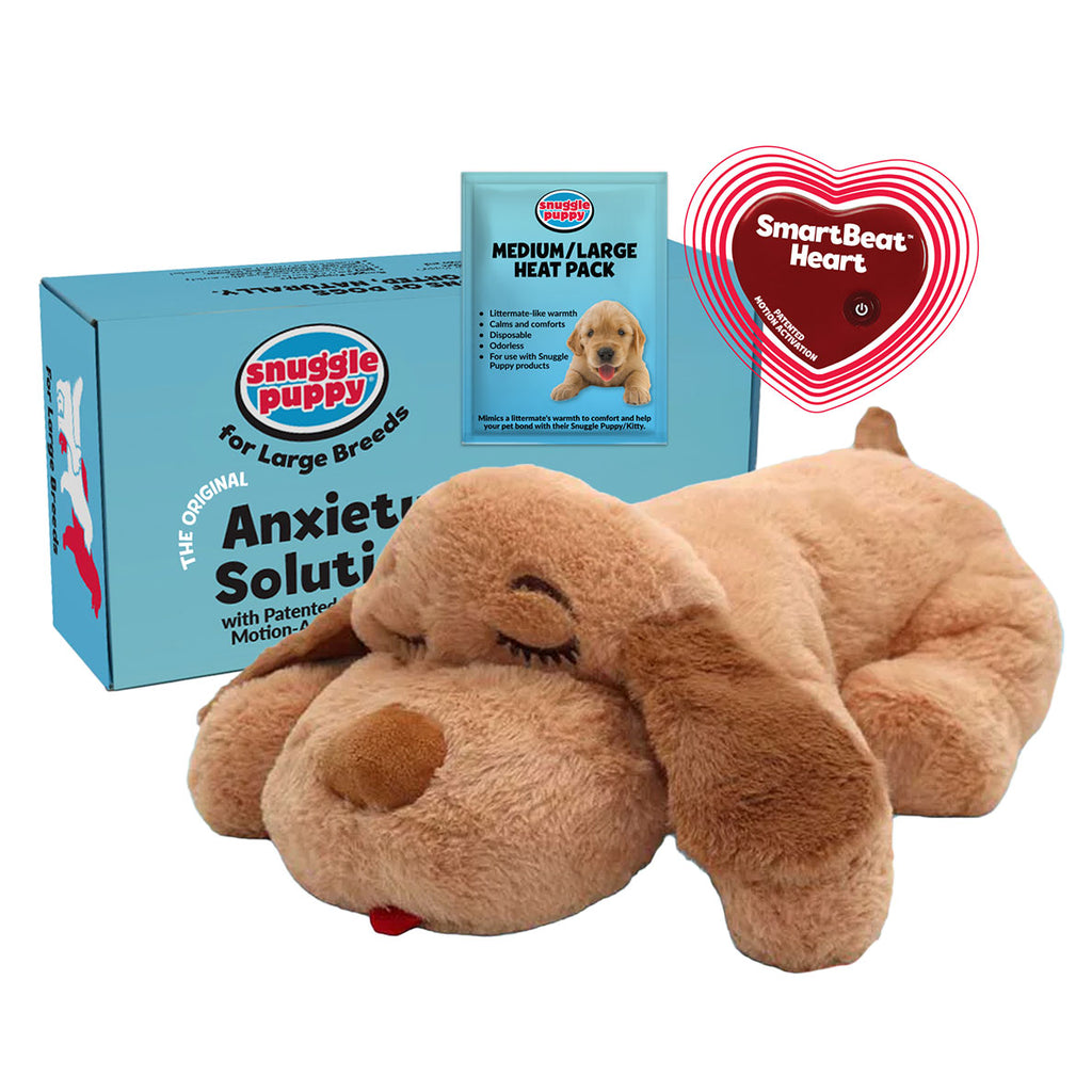 Snuggle Puppy® for Large Breeds is the perfect solution for pet anxiety relief, crate training, and peaceful sleep for your furry friend. Designed to ease your pet's separation anxiety, it's perfect for new puppies transitioning home or any dog in need of a cozy companion.