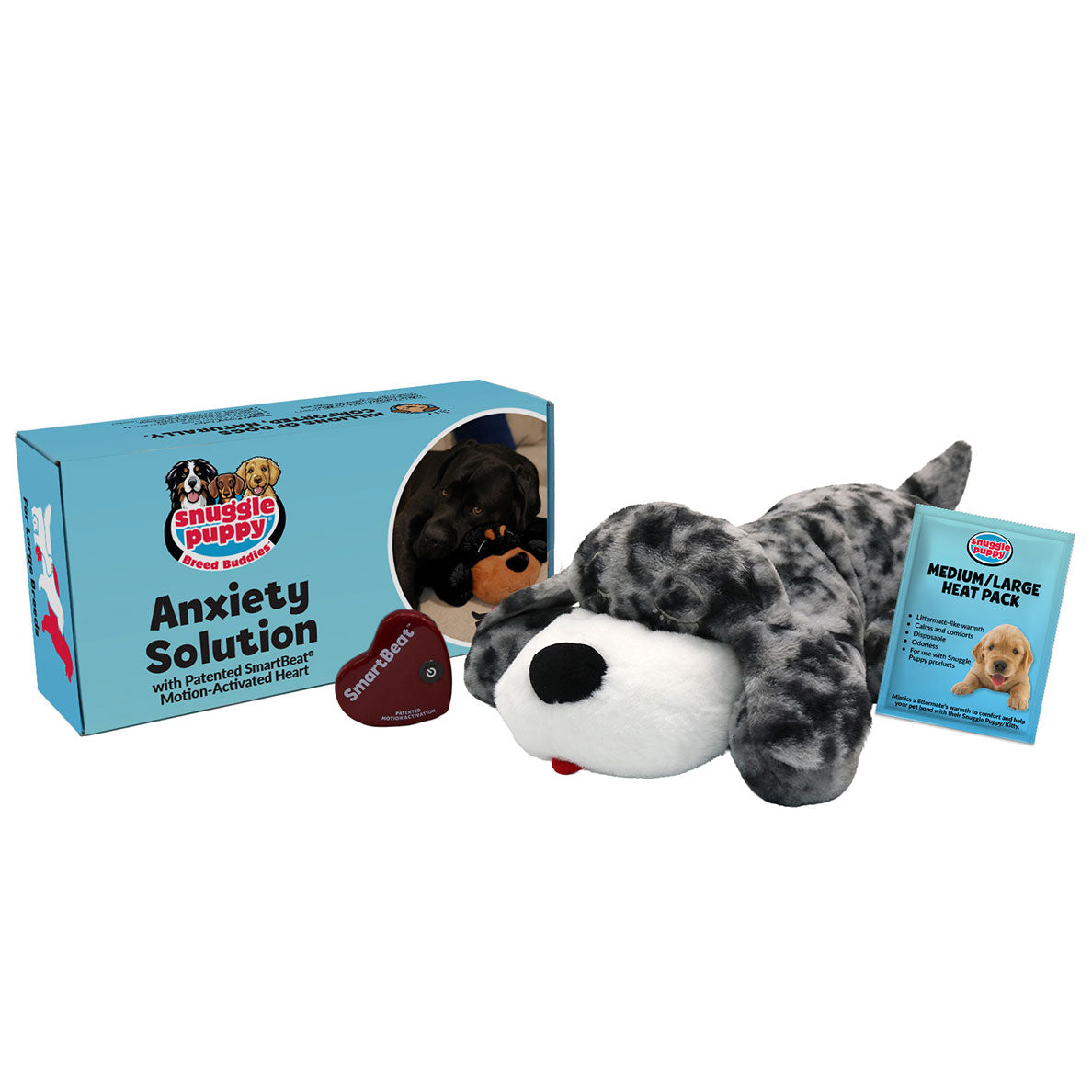 Snuggle Puppy® Breed Buddies™ combine the proven anxiety relief of the original with the signature markings of your favorite breed. Designed to look like a littermate, this familiar friend helps Great Dane puppies feel instantly safe, settle into their new home faster, and sleep soundly.