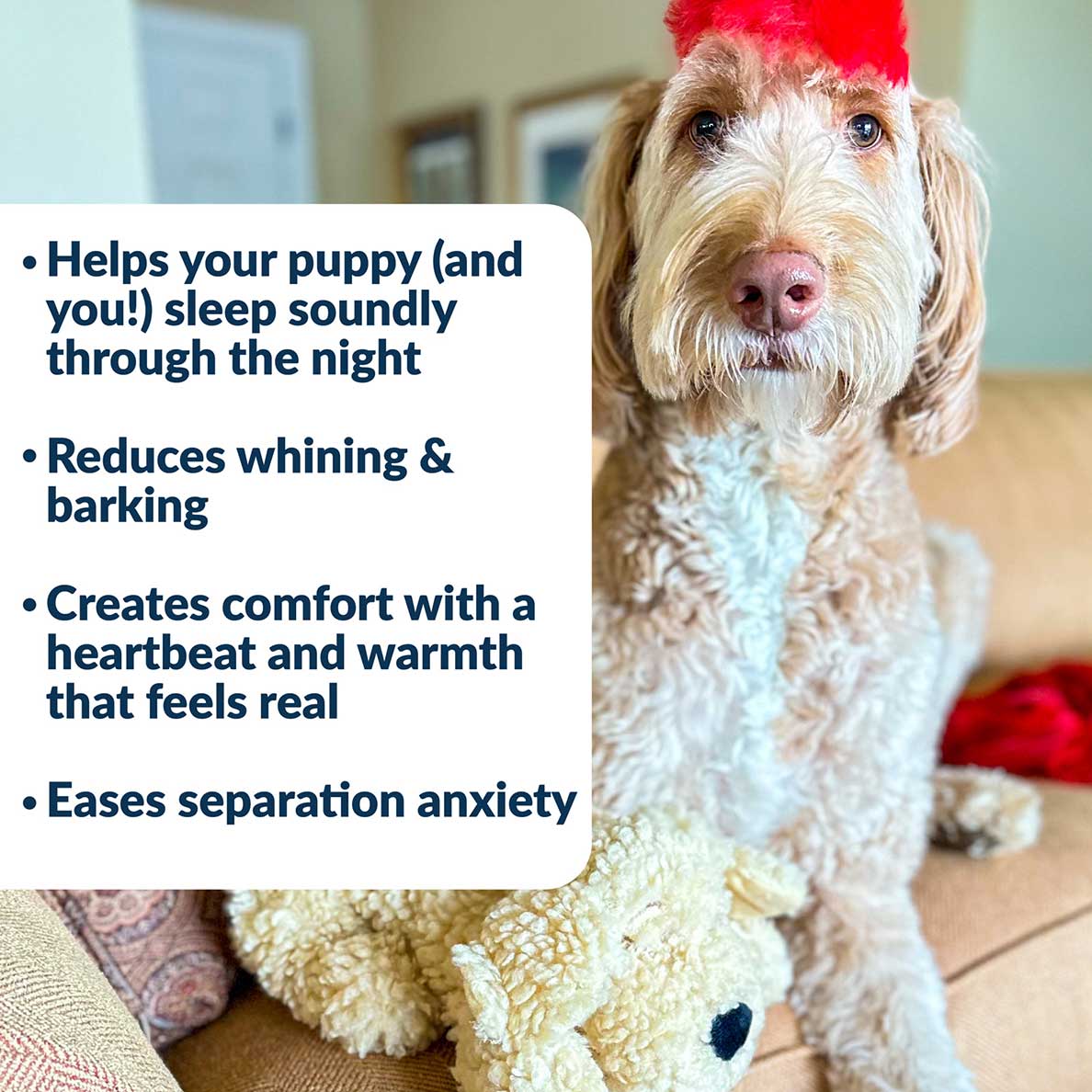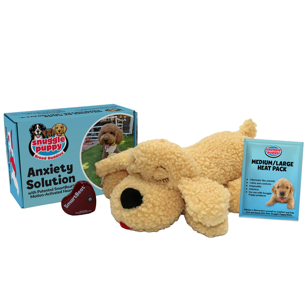 Snuggle Puppy® Breed Buddies™ combine the proven anxiety relief of the original with the signature markings of your favorite breed. Designed to look like a littermate, this familiar friend helps Doodle puppies feel instantly safe, settle into their new home faster, and sleep soundly.