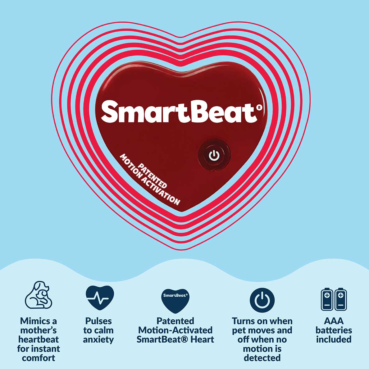 - SmartBeat™ Technology: The patented heart features a pulsing Real-Feel Heartbeat®. It turns on/off based on your dog's movement (Advanced Mode) or can run continuously (Standard Mode).
