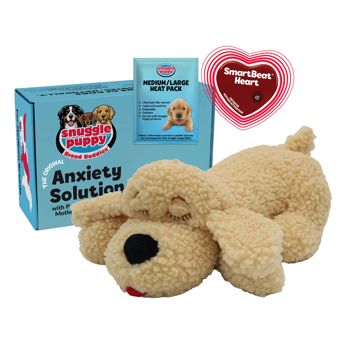 Just like the original, it features a Motion-Activated SmartBeat™ Heart and Overnight Heat Pack. This combination mimics the physical warmth and heartbeat of their mother, while the breed-specific design provides visual comfort to reduce loneliness and separation anxiety.