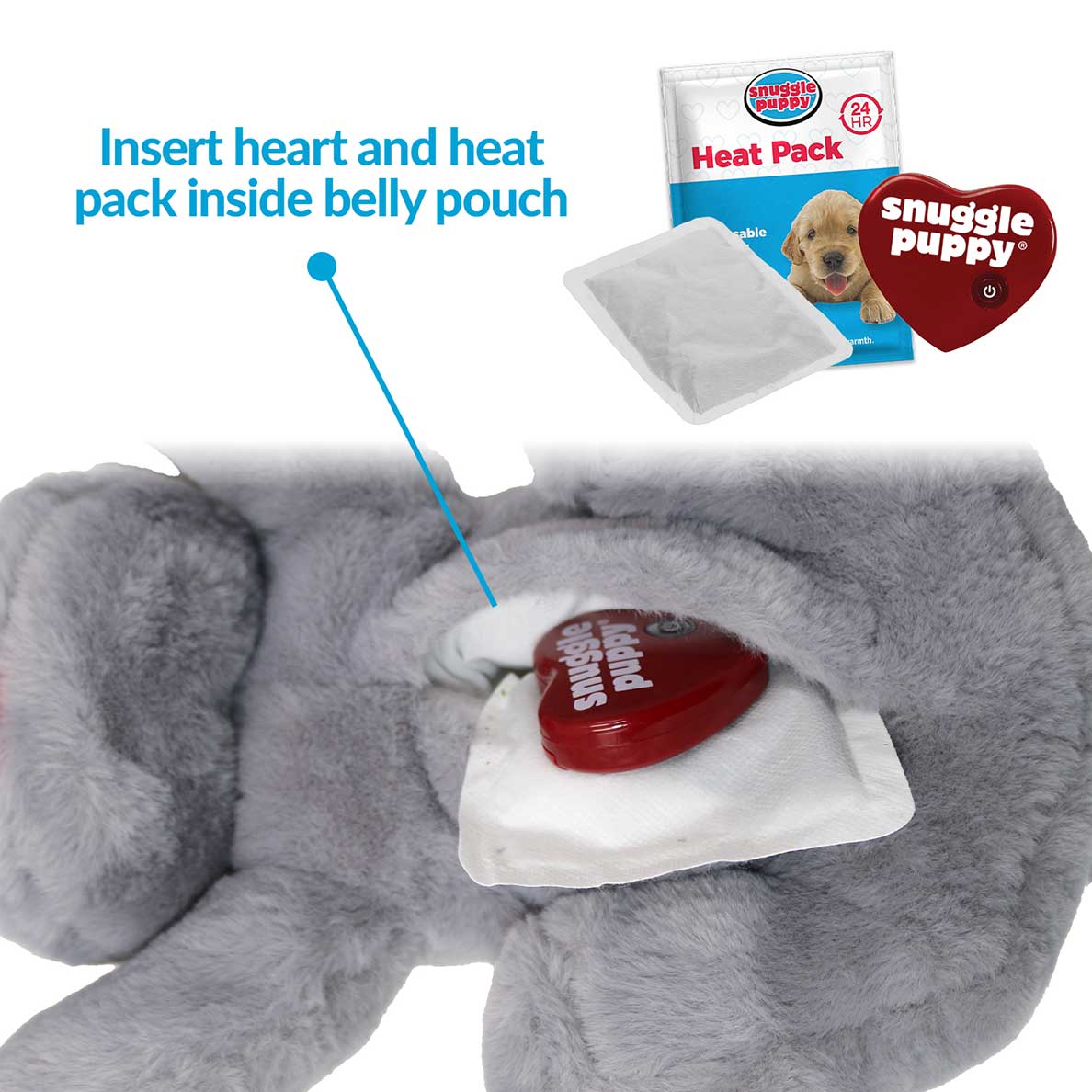 - Snuggle Puppy® is machine washable on a gentle cycle (make sure to remove the heartbeat and heat pack prior to washing).
