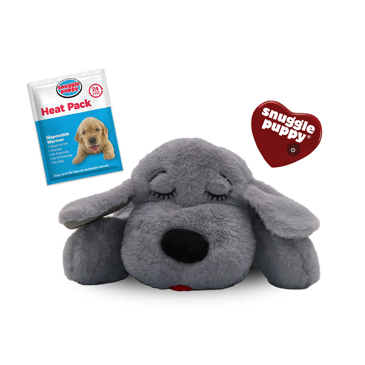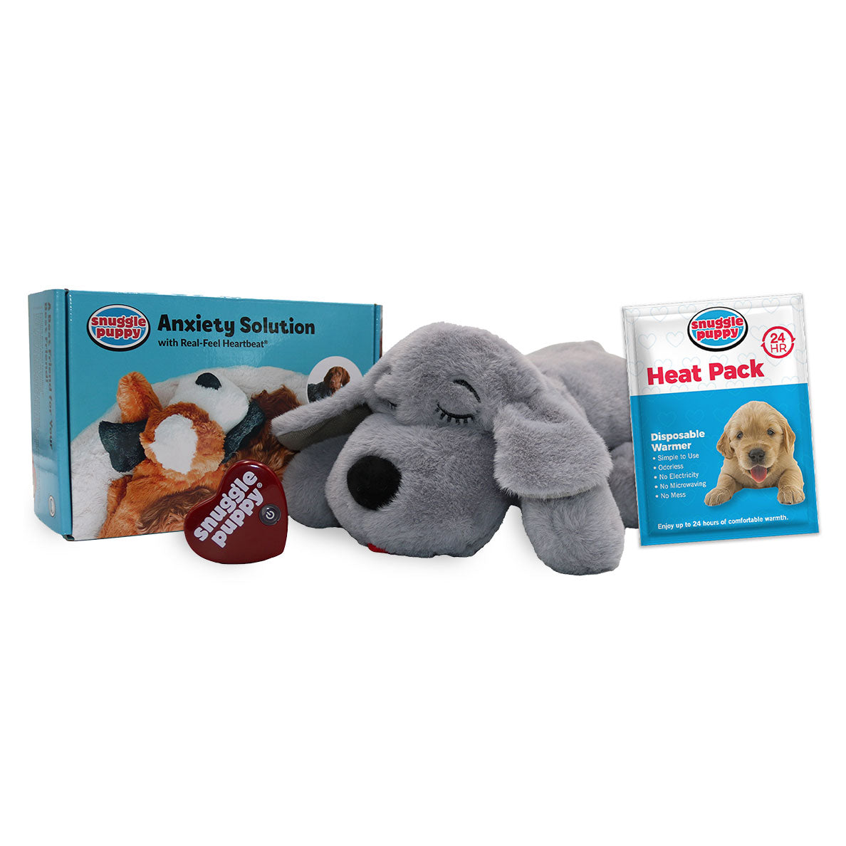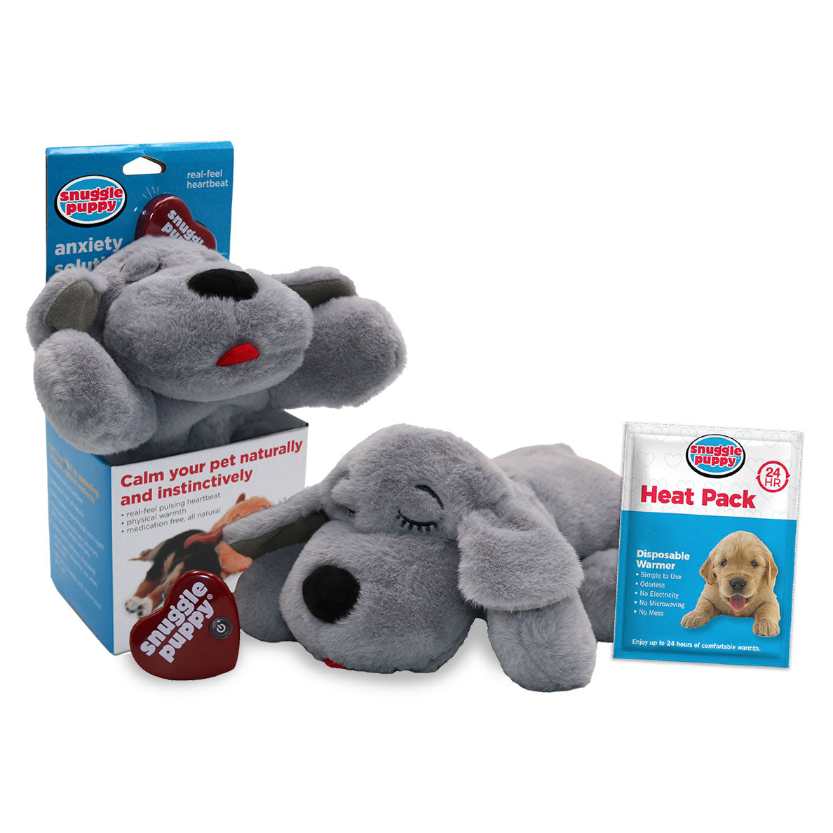 The Snuggle Puppy® is the perfect solution for pet anxiety relief, crate training, and a peaceful sleep for your furry friend. Designed to ease your pet's anxiety and provide comfort, and perfect for new puppies or any pet in need of a cozy companion, the Snuggle Puppy features a pulsing Real-Feel Heartbeat® and heat pack, mimicking the warmth and heartbeat of a real littermate. This helps reduce stress from separation, loud noises, and unfamiliar environments. Made from soft, pet-safe materials, the Snuggle Puppy is both durable and machine-washable, as well!