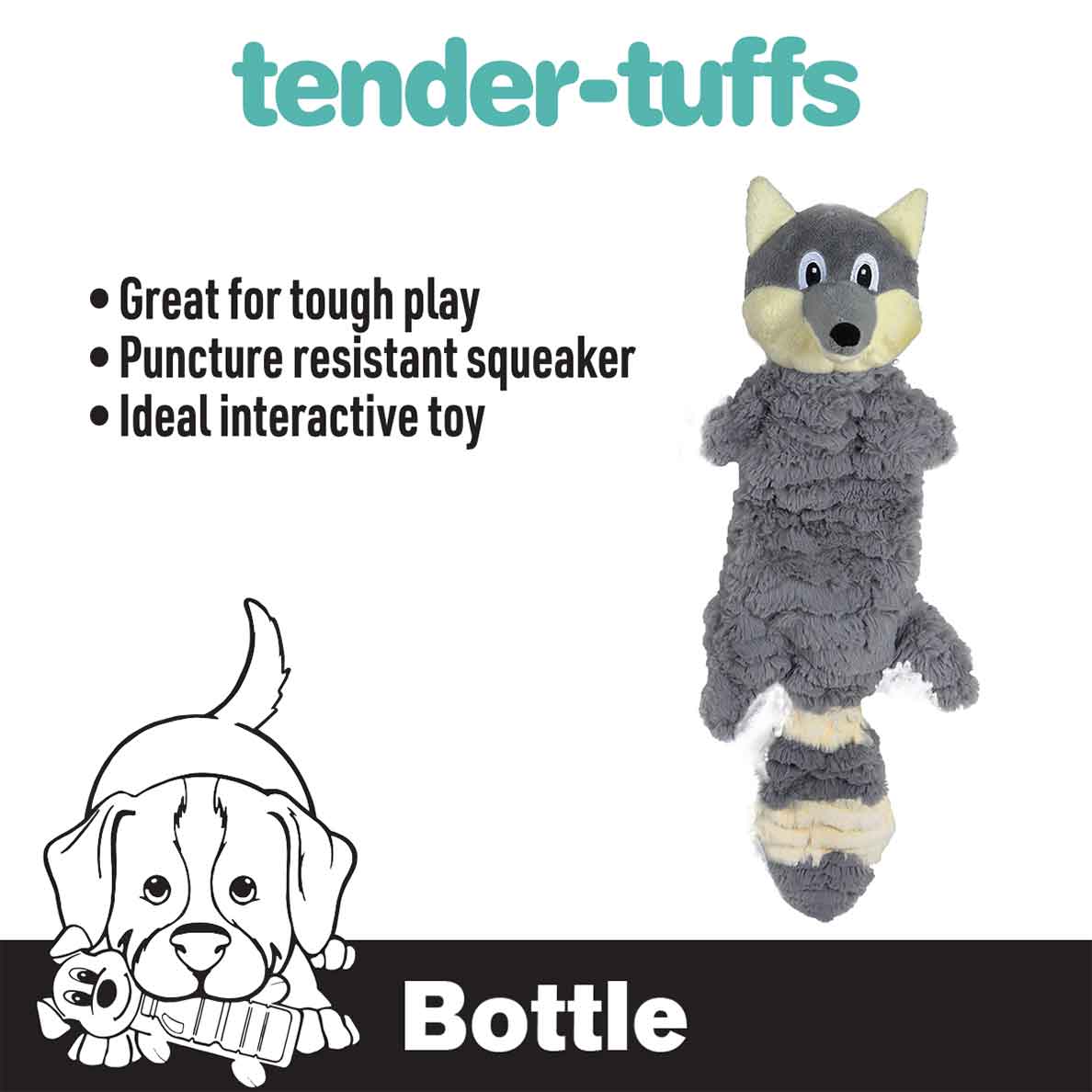 The Tender-Tuffs Bottle Fox is an interactive dog that is great for tough play. Fill the Fox with an empty plastic water bottle to make it a crinkle dog toy with a fun crinkle sound. This toy is soft and even has extra crinkle sounds in the tail!