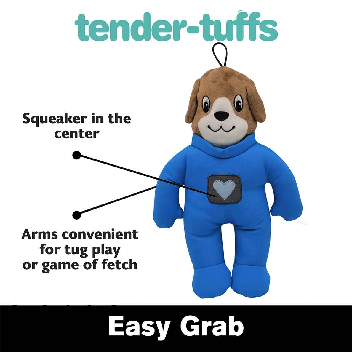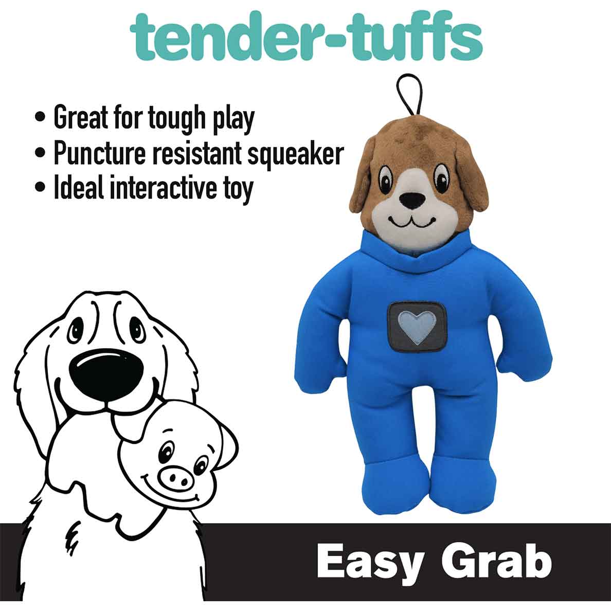 Tender-tuffs are intended for tough play but are not meant as a chew toy. When choosing a stuffed dog toy for your dog, remember to consider their activity level and size. As with all pet toys, please supervise your dog when playing with their tender-tuffs.