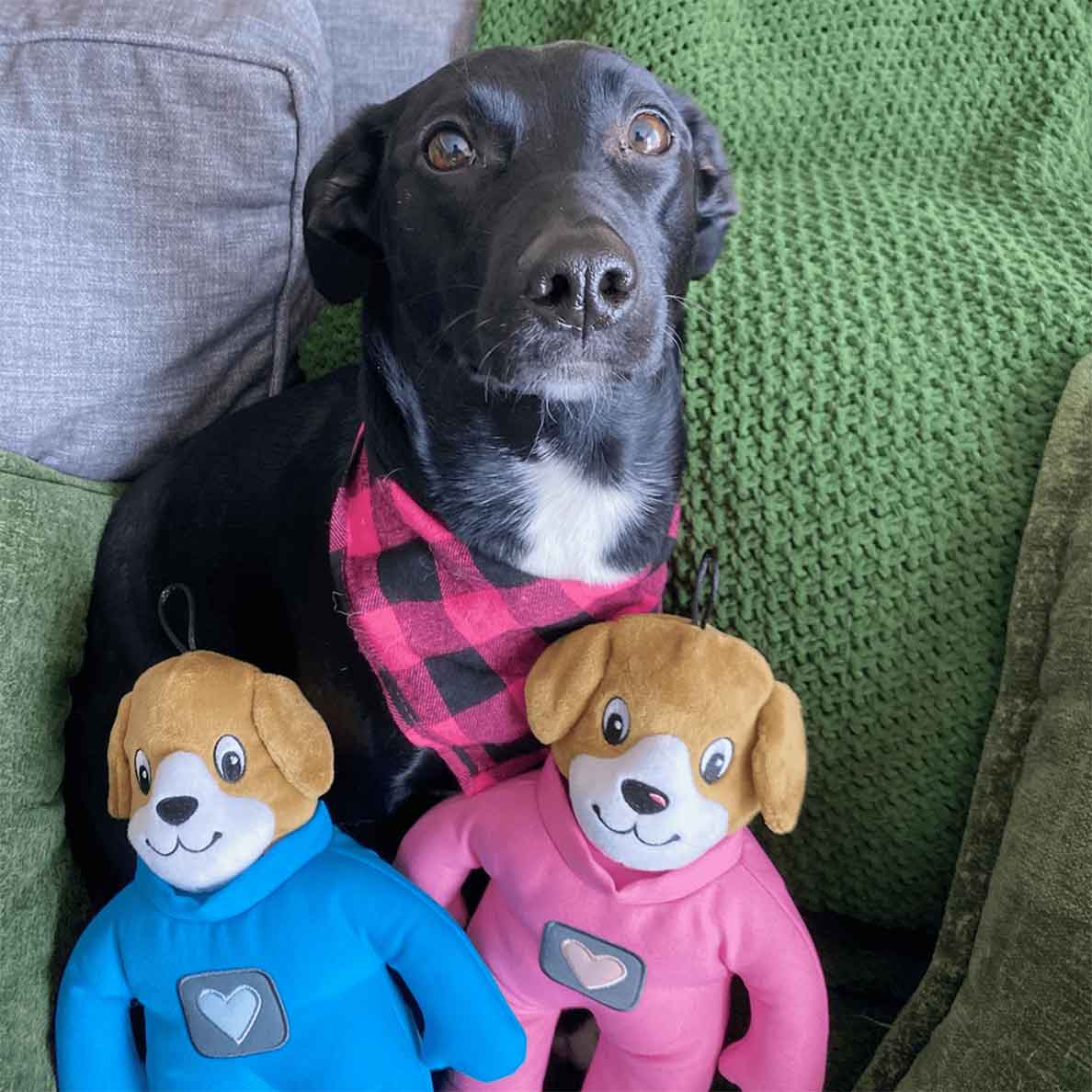Meet Buzzy, the blue Space Pup! Buzzy Space Pup is an interactive dog toy that would be perfect for a game of fetch or tug.