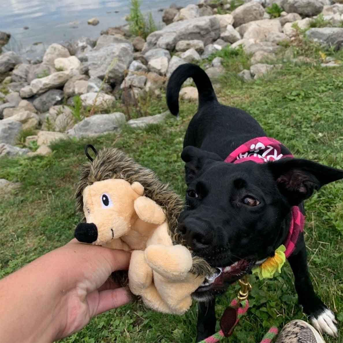 Looking for a dog toy that stimulates all of your pup’s natural instincts? The hedgehog comes with a furry back and includes a crinkle sound fabric in its body.
