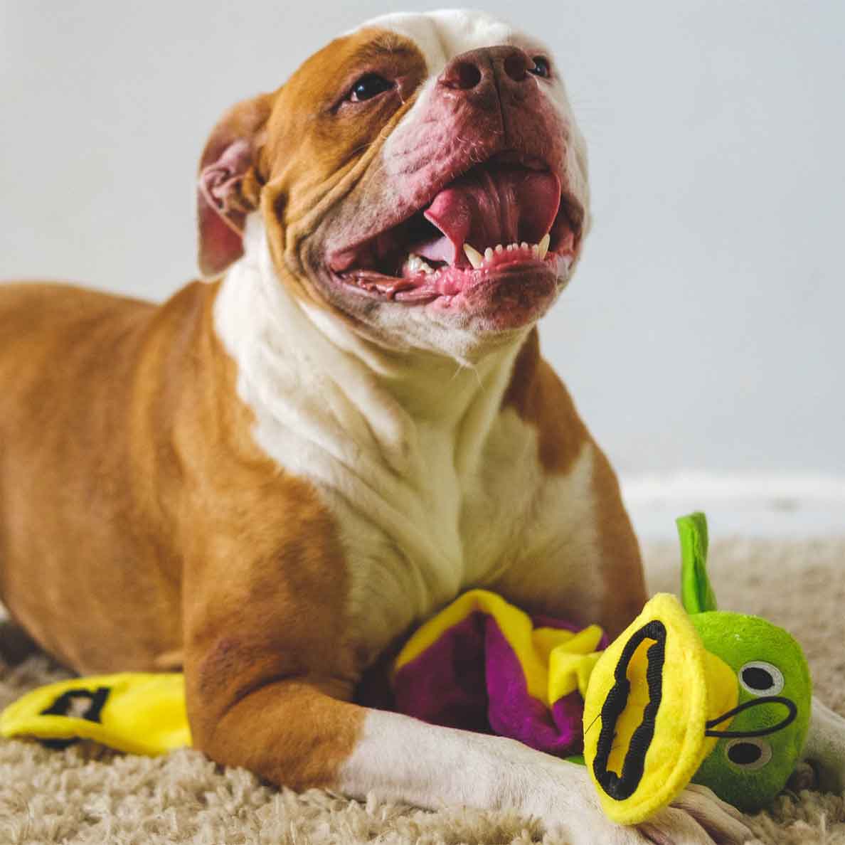Made with TearBlok Technology, tender-tuffs are soft, strong, and last long! Tender-tuffs plush dog toys are available in a variety of categories including tug, ball, crinkle, no squeak dog toys, large breed, small breed, fetch, and more. We have the perfect toy to fit your dog’s individual style of play.