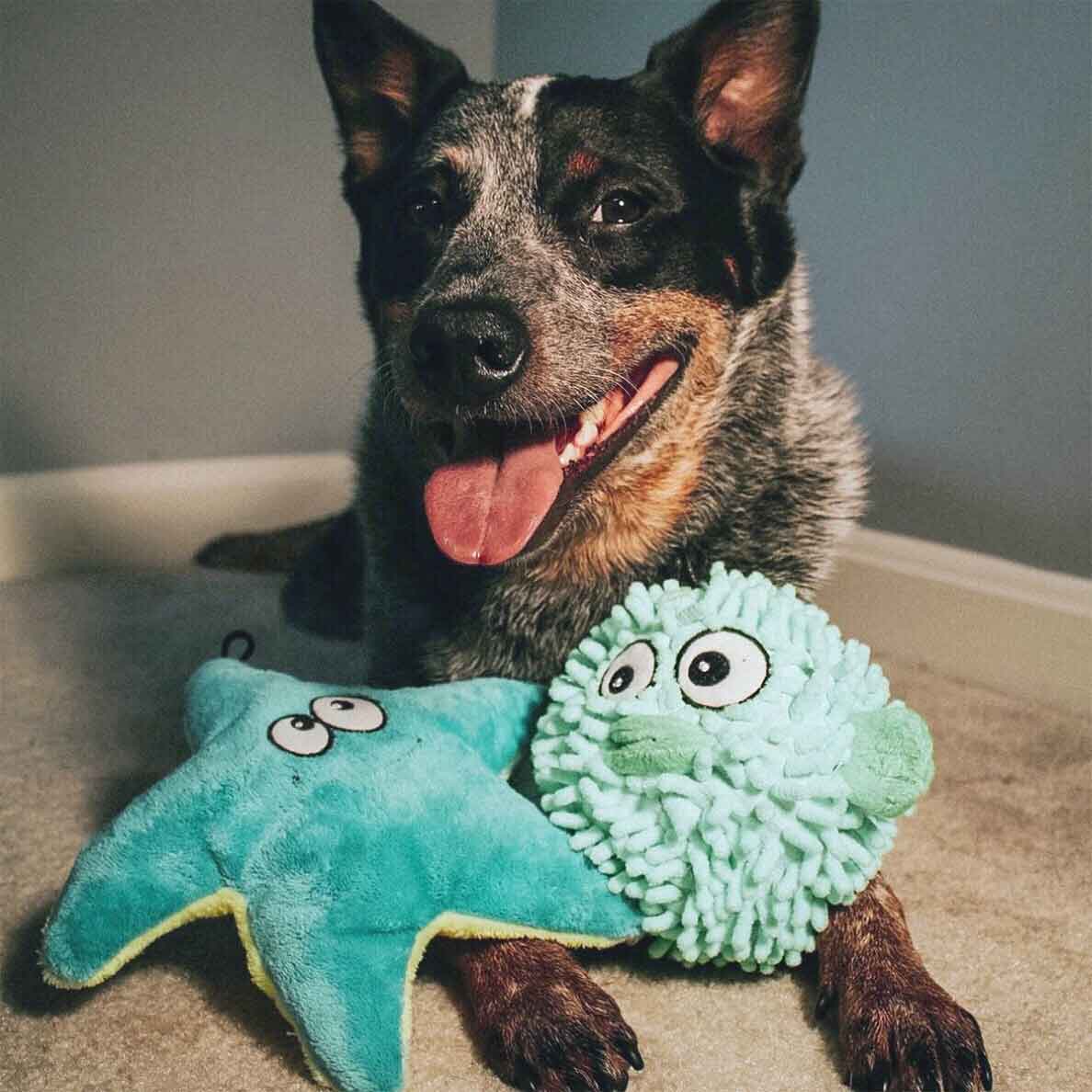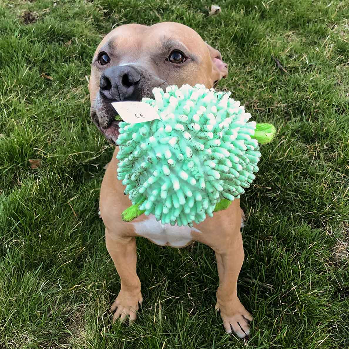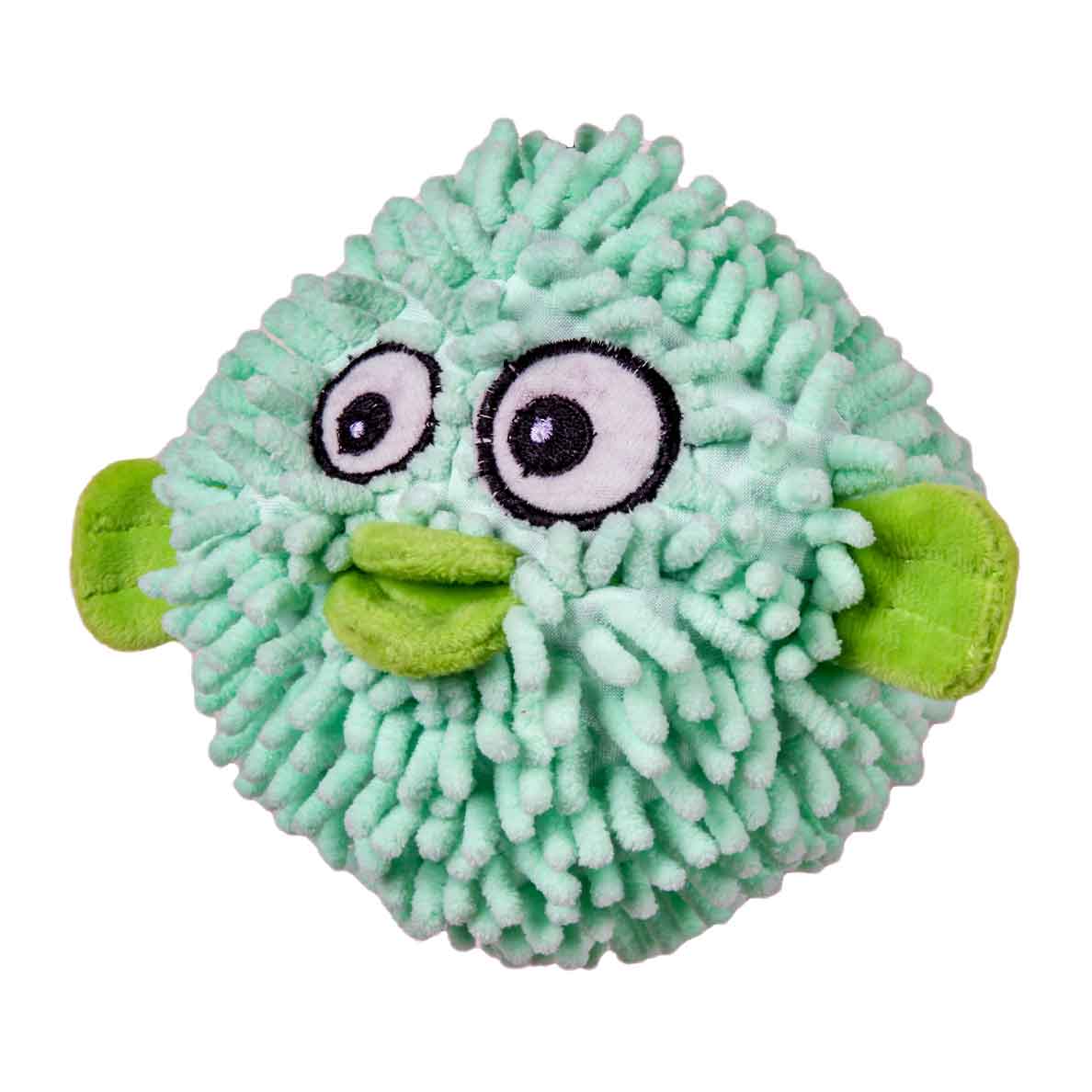 With a round shape and a quilted fabric your dog will be chasing after this toy for hours. Pufferfish has fins that are soft and easy for your dog to grab with its mouth.