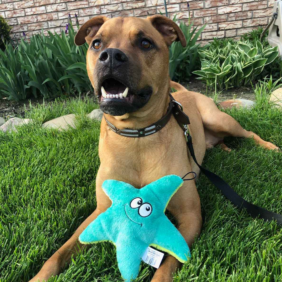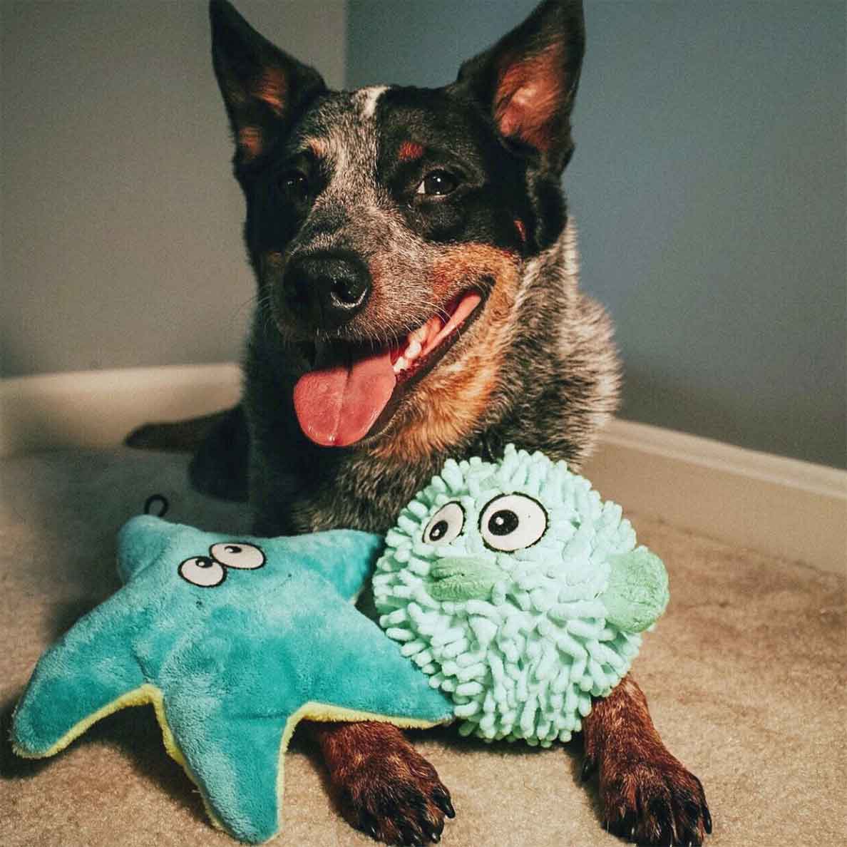 This fun Starfish dog toy comes with a puncture-resistant squeaker in its body. The body is soft, easy to grip, and perfect for a game of fetch! This pet toy is ideal for all dogs and comes with reinforced TearBlok fabric for hours of play!