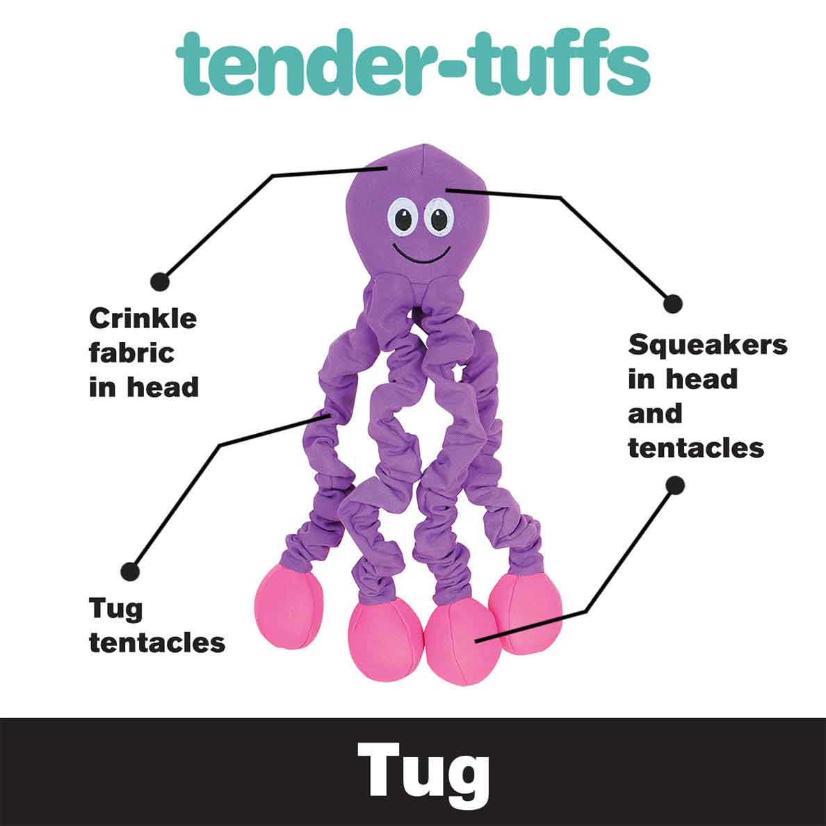 - UNIQUE! This Stretchy Purple Octopus interactive dog toy is uniquely designed to stretch for a fun game of tug of war!